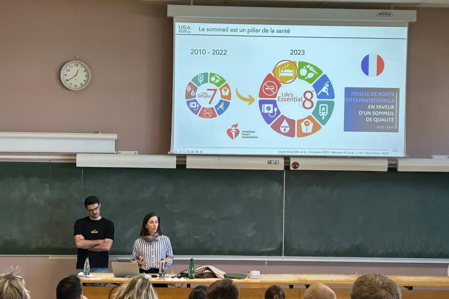 Merci à Monique Mendelson, Maître de conférence, enseignante chercheuse en STAPS au HP2 LABORATOIRE et à l'UFR STAPS GRENOBLE et à Nathan Descôtes, doctorant au Laboratoire SENS et HP2 LABORATOIRE d’avoir captivé l’audience avec des présentations riches et pertinentes. Nathan Descôtes est ancien étudiant du DSDA, il a effectué ses premières années en licence STAPS.