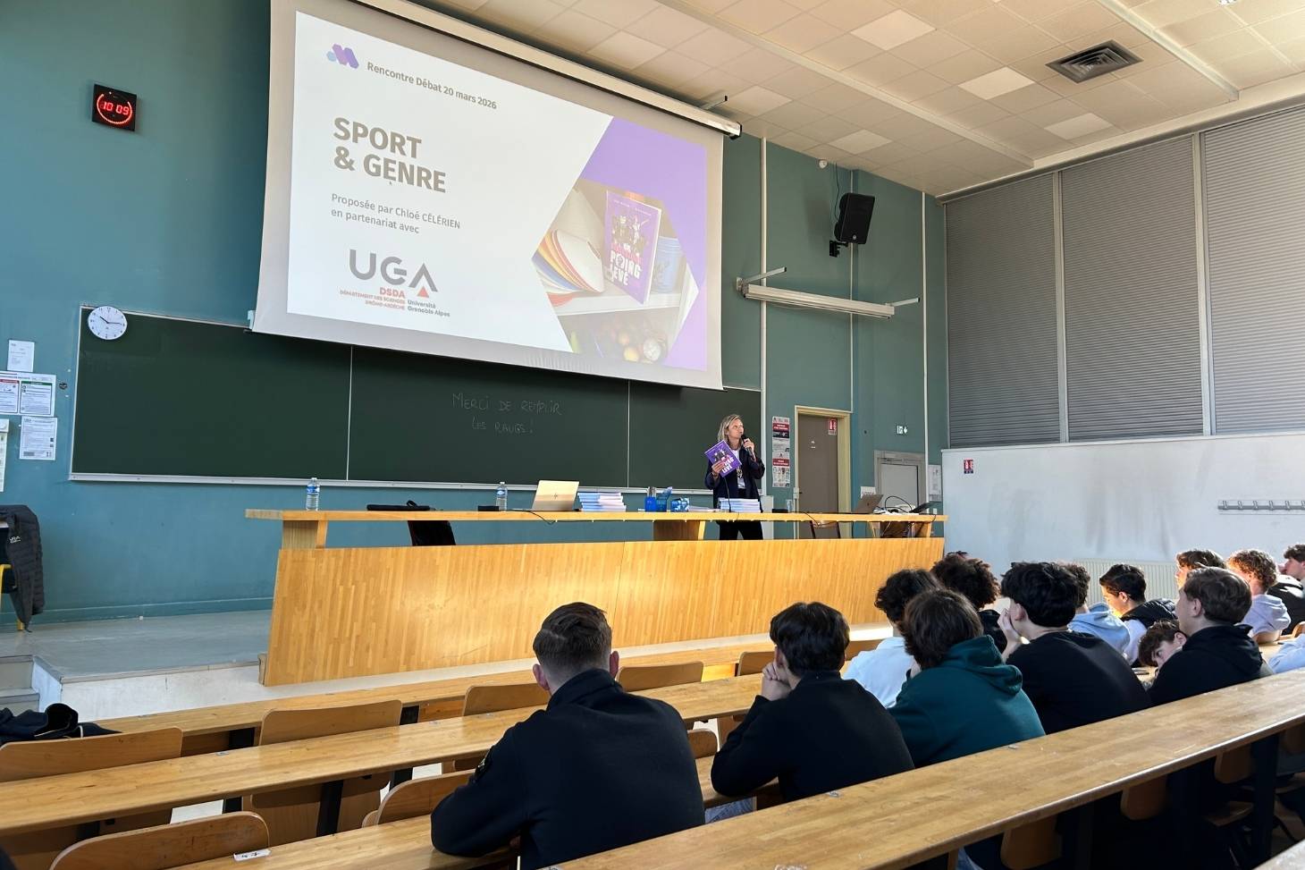 À l’occasion de sa venue au DSDA, la journaliste et autrice Chloé Célérien a proposé une conférence autour des inégalités et des formes de résistance qui traversent le monde sportif. L’événement a rassemblé les étudiants de L2 STAPS ainsi que des élèves de seconde et de première issus de sections sportives du lycée Algoud Laffemas.