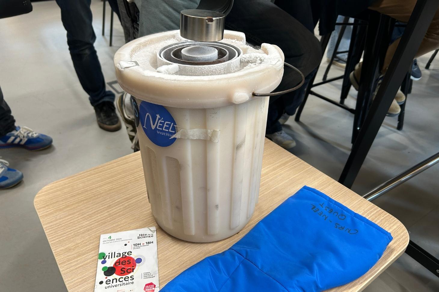 Accompagné de deux étudiants du Master 1 Ingénierie nucléaire, il a proposé au public une démonstration du phénomène de lévitation magnétique, rendue possible grâce à l'utilisation de bonbonnes d'azote liquide. Les visiteurs ont ainsi pu observer en direct comment des aimants peuvent léviter au-dessus d'un matériau surpaconducteur refroidi à très basse température.